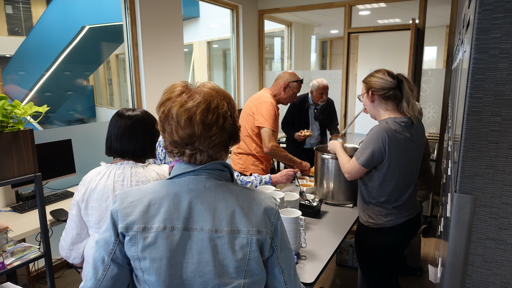 De samenspraak tussen Elly Sweere en voorzitter Harrie Kanters, een alfabetisch gerangschikte levensloop. Het optreden van de overige leden van de oriëntatiegroep ‘Vederlicht’ Betsie, Joke en Sjef.